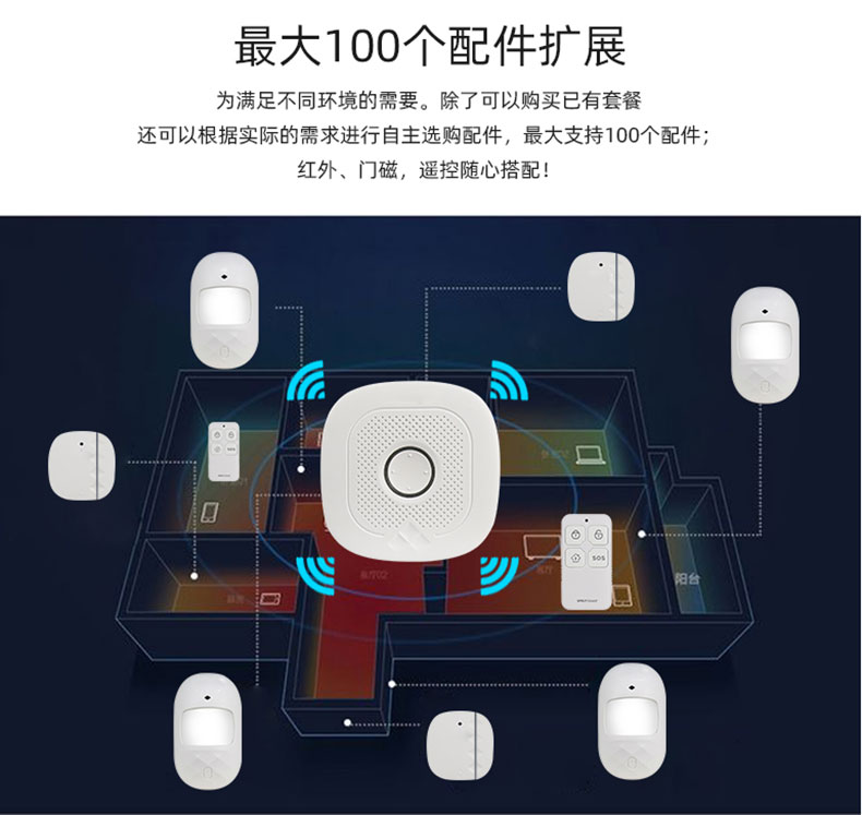 支持?jǐn)U展至10個(gè)防區(qū)、每個(gè)防區(qū)10個(gè)無(wú)線探測(cè)器;